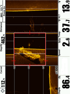 Sunken wood boat. 898SI + Towfish