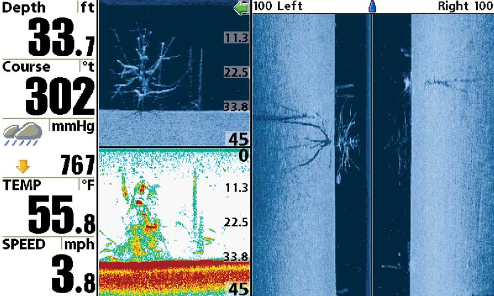 Down Imaging, Side Imaging, and 2D Sonar Split View