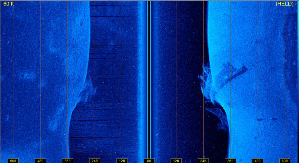 This is a screen capture of a video that was taken at Belews Lake, NC. I have taken several snapshots of this object and it appears to be a house foundation but this image looks more like it is a boat. Not sure just what it is.
