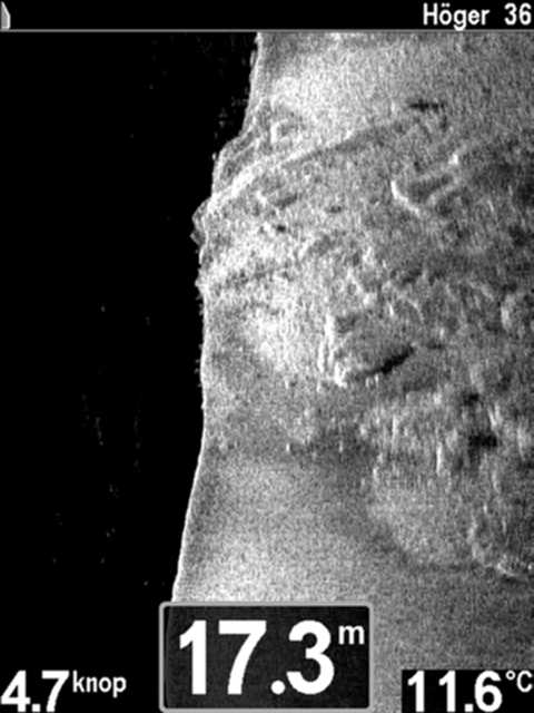 This is an typical picture that shows how diificult it can be to find old wooden wrecks. In the middle of the picture you can see the skeleton of an galear that sunk in the middle of 1500. It carried to bronze canons as mainguns and one iron canon. Only thing that remains off this swedisch gunboat is the keel and ribbons.