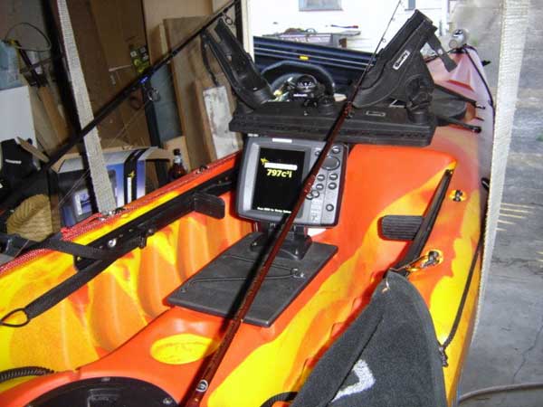 This is my setup on my OK Prowler Elite. Had to modify the transducer scupper hole with a heat gun to the the huge tran in the hole. Works great!