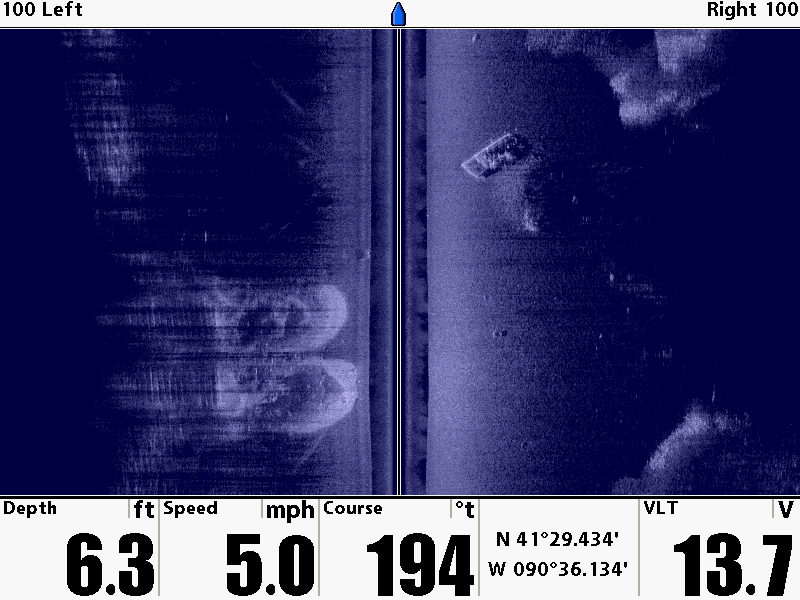 This is an image of what I believe is a car near a boat ramp. Note the prop wash. Note the concrete segments of the ramp.