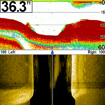 Notice fish shadows on bottom. Fish are suspended at 15 feet