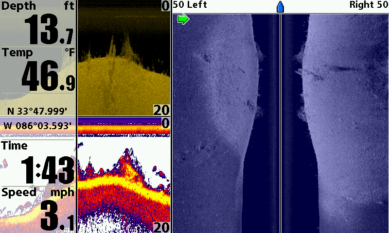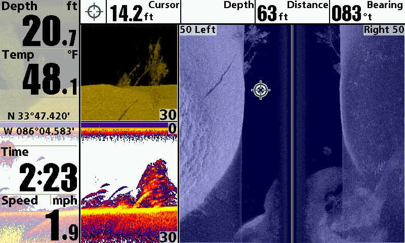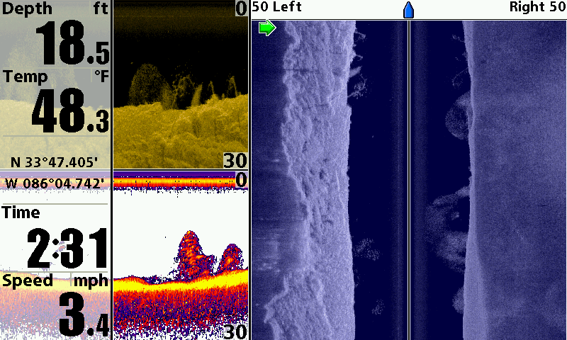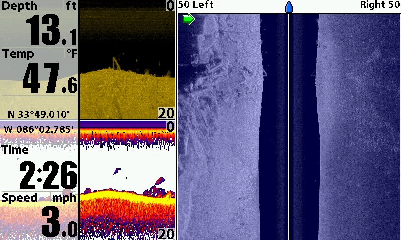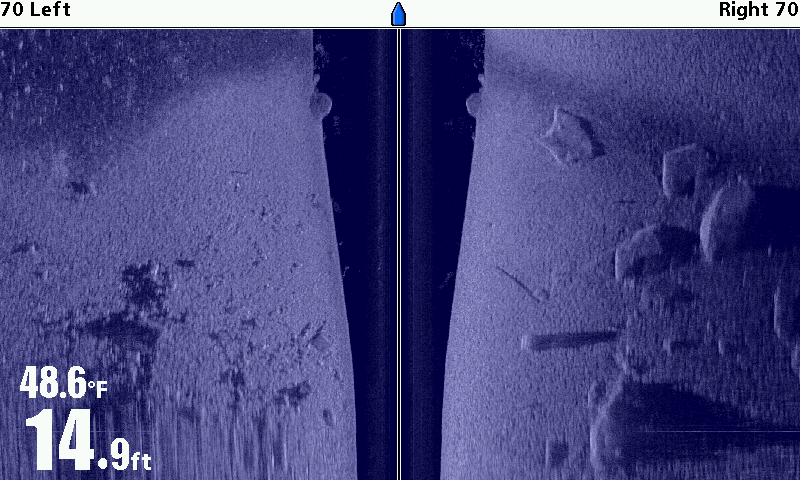Huge koichestvo boards. What etomozhet be? The collapse of the old wooden ship, or a wooden house? River. From the shore is not very far away. Lowrance StructureScan + HDS-5.